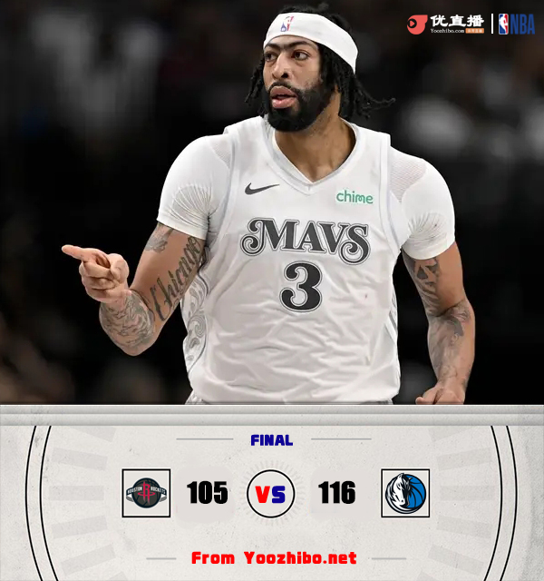 JRS直播网讯2月9日NBA常规赛,独行侠主场迎战火箭。独行侠27胜25负排西部第8,火箭近期5连败,32胜19负排西部第5。浓眉本场迎来首秀。一开场,浓眉制霸攻防,内外开花独得14分帮助球队取得两位数领先,杰伦-格林里突外投带队追赶,次节浓眉和丁威迪联手带出10-1的攻势一举将分差拉开到20分,杰伦-格林连续拿分苦苦支撑,半场战罢独行侠65-48领先火箭。下半场,火箭奋力反击轰出19-4的攻击波,独行侠连投带罚稳住局势,浓眉受伤返回更衣室,末节独行侠稳扎稳打保持优势,火箭苦苦追赶无果。最终,独行侠116-105击败火箭,送给对手6连败。