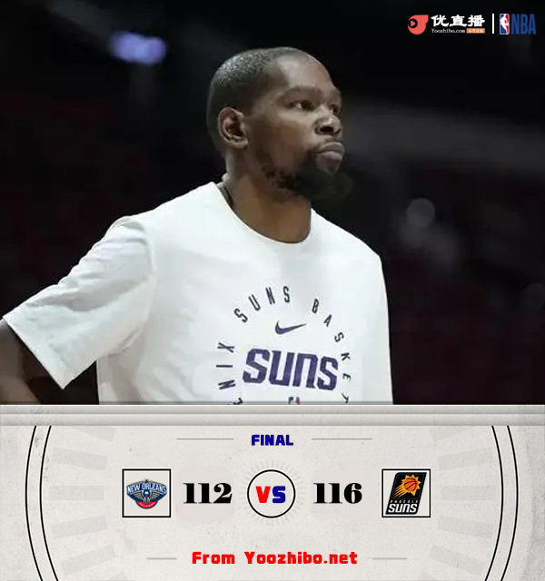 JRS直播网讯北京时间2月28日讯 NBA常规赛,太阳主场迎战鹈鹕。太阳27胜31负排在西部第11,鹈鹕15胜43负西部倒数第2。比尔本场缺阵。比赛开始,双方开场大打对攻,锡安得分助攻一肩挑,布克和杜兰特联手拿分给出回应,墨菲频频外线开火,次节鹈鹕命中率下降,布克穿针引线,波尔高效发挥帮助太阳迫近比分并完成反超,半场战罢太阳62-61领先鹈鹕。易边再战,两队继续缠斗,比分始终紧咬,锡安全面发挥,杜兰特和布克稳定输出还以颜色,末节双方争夺陷入白热化,关键时刻鹈鹕内外开花确立8分优势,太阳苦苦追赶无果。最终,鹈鹕124-116击败太阳,送给对手3连败。