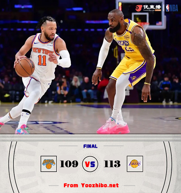 JRS直播网讯 北京时间3月7日讯 NBA常规赛,湖人主场迎战尼克斯。湖人目前7连胜,39胜21负高居西部次席;尼克斯则是40胜21负东部第3。本场比赛,八村塁、古德温继续缺阵,里夫斯复出;唐斯也出战比赛。比赛开始,双方都迅速进入状态,布伦森和东契奇展开对飙,东契奇和詹姆斯接连喂饼杰米森,湖人8-0取得领先,但布伦森压哨中投再进追到差4分,次节湖人进攻端陷入停滞,阿努诺比外线弹无虚发单节轰下13分,尼克斯打出进攻高潮直接反超比分,詹姆斯连续突破回应,半场尼克斯反超9分。下半场,布伦森连续突破取分,尼克斯牢牢掌握住双位数领先,里夫斯终于命中首个运动战进球,克内克特压哨三分追到差8分,末节双方都是高强度防守,湖人给机会始终把握不住,文森特和詹姆斯接连底角三分命中,湖人8-0追到仅差1分,比赛进入白热化,文森特和詹姆斯又是接连3记三分终于反超比分,布伦森2+1再扳平,双方进入加时。加时赛,东契奇接连高难度中远投连砍5分,里夫斯三分也进,布伦森连续突破或造杀伤砍下6分后崴脚受伤还坚持罚球,海斯和詹姆斯接连罚球,阿努诺比关键加罚不中,最终湖人加时113-109险胜尼克斯,豪取8连胜。