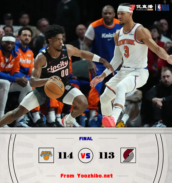 JRS直播网讯3月13日 NBA常规赛,尼克斯对阵开拓者,尼克斯上场比赛轻取国王结束连败,开拓者最近遭遇4连败。开场后两队打得十分激烈,场上比分也是交替上升,布里奇斯早早进入状态频频拿分。第二节两队依旧打得相当胶着,唐斯内线多次强打得手,卡马拉和夏普轮番砍分帮助开拓者紧追不舍。易边再战,阿努诺比用反击和三分为尼克斯先发制人,开拓者立马用一波7-0又将比分追上。最后一节两队依旧僵持不下,唐斯关键时刻连中两记三分,亨德森最后独得8分帮助开拓者将比赛拖入加时。加时赛中两队命中率都不理想,哈特发球失误,阿夫迪亚打成关键2+1反超比分,布里奇斯三分绝杀,最终尼克斯经过加时114-113险胜开拓者。