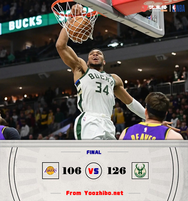 JRS直播网讯北京时间3月14日讯 NBA常规赛,湖人客场挑战雄鹿。湖人40胜23负西部第4,雄鹿36胜28负东部第4。比赛开始,双方开场大打对攻,大洛高效发挥,字母哥和利拉德也联手拿分,东契奇火力全开,十八般武艺样样精通,带队顽强咬住,利拉德连续造成杀伤7罚全中,双方继续对攻,湖人一波10-0迫近比分,小凯文-波特独中3记三分立下奇功,范德比尔特连续内线得手,半场战罢雄鹿71-63领先湖人。易边再战,湖人命中率骤降,雄鹿不断冲击内线连投带罚一举将分差拉开到20分以上,末节里夫斯内外开花苦苦追赶,雄鹿连续造成杀伤保持20分左右优势,比赛还剩4分钟时湖人换下主力投子认负。最终,湖人106-126不敌雄鹿,遭遇3连败。