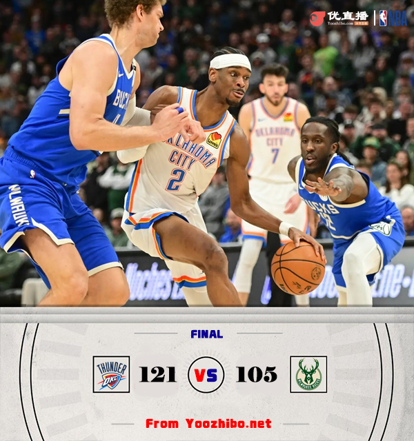 JRS直播网讯北京时间3月17日讯 NBA常规赛,雷霆对阵雄鹿,雷霆最近取得2连胜稳居西部榜首,雄鹿最近也是拿到2连胜。开场后两队你来我往就打得相当激烈,雷霆一度连得6分取得领先,特伦特替补登场后联合利拉德打出攻势在首节结束帮助雄鹿反超比分。第二节上来乔和哈尔滕施泰因内外联手帮助雷霆打出攻势夺回领先,雄鹿进攻主要靠利拉德和字母哥两人发挥,亚历山大接连砍分回应带领雷霆将分差拉大到两位数。易边再战,雷霆延续攻势继续扩大领先,雄鹿多点开花努力追分,但雷霆始终保持稳定的发挥,最后一节字母哥带队虽然略微缩小一些分差,但分差还是维持在两位数,最终雷霆121-105轻松击败雄鹿取得3连胜。