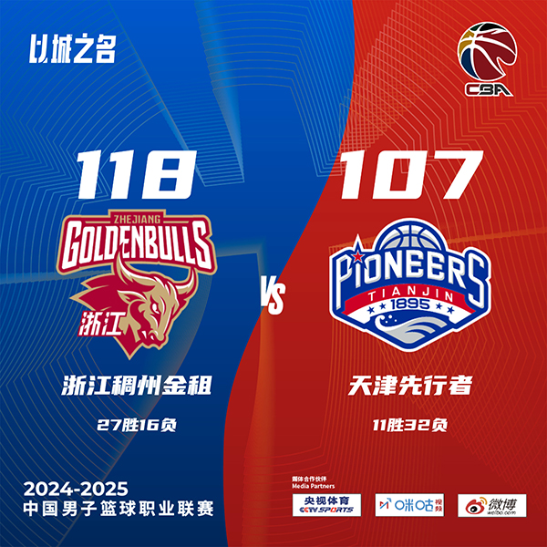 JRS直播网讯 北京时间3月22日讯 CBA常规赛,浙江主场迎战天津。浙江26胜16负排在联赛第10,天津11胜31负排在第16。上半场,浙江率先发力,内外开花取得两位数领先,天津不断冲击内线努力追赶,浙江连中三分迅速回应,次节双方大打对攻,约克火力全开,连中三分带队保持优势,半场战罢浙江66-53领先天津。下半场,天津发起反击缩小分差,约克延续火力带队保持优势,末节两队继续对攻,浙江火力更猛不断扩大优势,杜伯超和王奕博发生口角双双吃T,杜伯超犯满离场。最终,浙江118-107轻取天津,主场过关。