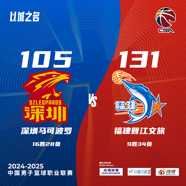 JRS直播网讯北京时间3月23日中国男子篮球职业联赛 常规赛,深圳马可波罗对阵福建晋江文旅。半场深圳52-67福建,最终深圳105-131福建。深圳马可波罗王浩然22分6板7助,贺希宁20分7板3助;福建晋江文旅奎因-库克27分1板1助,约瑟夫-杨27分3板6助。