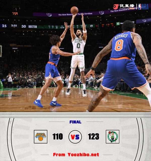 JRS直播网10月18日讯 CBA季前赛尼克斯对阵凯尔特人,本场比赛尼克斯的布伦森、兰德尔均缺阵,凯尔特人则是主力尽出。开场后两队手感都十分火热,在三分线外对飚三分,在首节后半段塔图姆火力全开接连砍分带领凯尔特人建立起两位数优势。第二节塔图姆依旧状态神勇,双方在外线依旧保持着不错手感,不过凯尔特人攻势更胜一筹继续将分差拉大,他们一度领先到25分,尼克斯在半场结束前连中三分略微将分差缩小。易边再战格莱姆斯三分线外依旧弹无虚发,在他的带领下尼克斯一度将分差缩小到个位数,随后三巨头联手发挥回敬一波9-0稳住阵脚。最后一节凯尔特人上来继续连中三分,他们发挥稳定将领先优势保持到最后,最终凯尔特人轻松拿下尼克斯。
