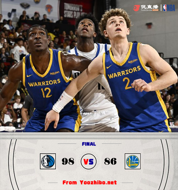 JRS直播网讯 7月13日 NBA夏季联赛继续开打,勇士和独行侠迎来一场交手,勇士方面阵容核心以首轮19号秀波杰姆斯基为主;独行侠方面则是二年级生哈迪加上今年12号新秀莱夫利为核心出战。首节之争两队状态相当多次交替领先,独行侠在最后一分钟里抓住勇士熄火的机会并由沃克命中三分拿到主动权;次节勇士凭借基诺内斯的连续拿分短暂反超比分;不过哈迪在进攻端状态不错,他在这一节连拿8分帮助球队守住6分优势进入下半场。休息归来场面依旧,独行侠虽然一度拿到9分优势但也无法接管比赛,勇士这边基诺内斯状态出色连拿10分,勇士用一波19-10的攻势迅速抹平比分。末节开局独行侠开局连续两次打成2+1后又在外线命中三分,他们送出15-5的攻势建立起两位数领先;这之后勇士疯狂反扑,最后时刻他们制造一记恶意犯规一个回合拿下4分,最后戴维斯命中三分扳平比分将比赛拖入加时。加时赛规则为任意一方率先拿到7分为胜者,双方一路交替拿分都拿到了6分后的赛点,最后独行侠凭借布拉克斯顿-基的补扣实现绝杀。最终,独行侠98-96险胜勇士拿下比赛,同时也送勇士三连败。