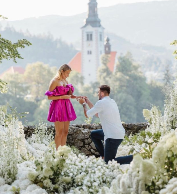 当地时间7月7日,东契奇在斯洛文尼的亚布莱德湖向他相恋多年的女友安娜玛利亚-戈尔斯求婚;在求婚现场,东契奇身穿西装裤和白色衬衫,戈尔斯则是穿着一件亮丽的裙子,东契奇单膝下跪并且给戈尔斯戴上戒指,戈尔斯满脸露出幸福的笑容。