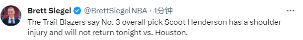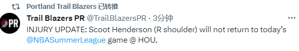 JRS直播网讯07月08日,NBA赌城夏季联赛开打,开拓者探花亨德森正式迎来首秀,三节出战21分钟,13投5中拿到15分5篮板6助攻1抢断,首节13分,第二节和第三节6投0中仅靠罚球拿到2分,第三节因伤提前退出比赛,开拓者官宣亨德森右肩受伤。