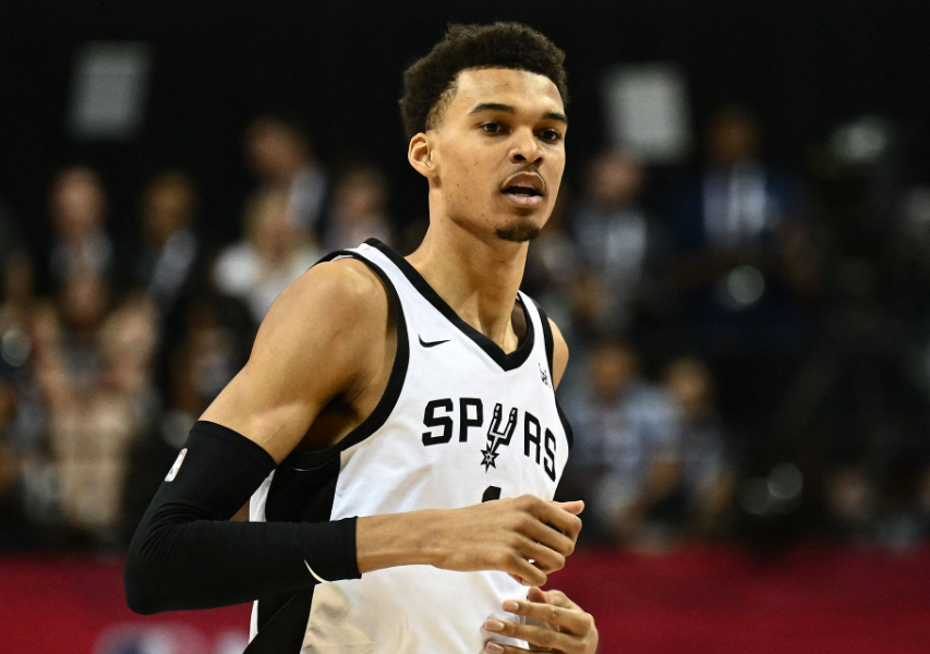 比赛正式开打,文班亚马开场前3次投篮都未能命中,期间文班亚马单挑榜眼米勒,杀到禁区起跳扣篮却弹框而出;随后文班亚马禁区成功防守对手,运球一条龙并且妙传助攻队友,紧接着文班亚马接球后遭遇包夹,仍打进不讲理2+1,打进个人首球;第一节打了4分钟后他下场休息,坐在替补席观战。