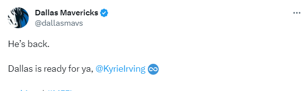 新赛季欧文将身穿独行侠11号球衣出战,此前他放弃独行侠2号并且请求改穿11号,小哈达威改穿10号球衣;22-23赛季,欧文在交易截止日前申请离队,最终被篮网交易到独行侠(篮网把欧文和大莫里斯交易到独行侠,得到丁威迪、芬尼-史密斯、2029年不受保护首轮选秀权、2027年和2029年次轮选秀权)。