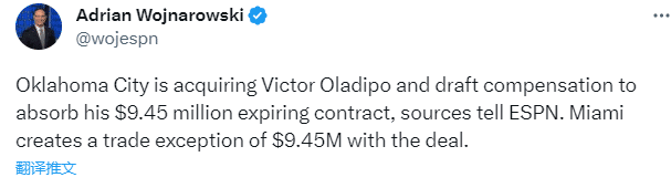 奥拉迪波重返雷霆,但雷霆只是利用薪资空间吃下他的合同,而且雷霆队大名单已满且奥迪有伤,因此雷霆很可能裁掉奥迪;奥迪是2013年榜眼,身高1米93体重96公斤,10年生涯至今,奥拉迪波先后为魔术、雷霆、步行者、火箭和热火效力,多次不幸遭遇伤病。
