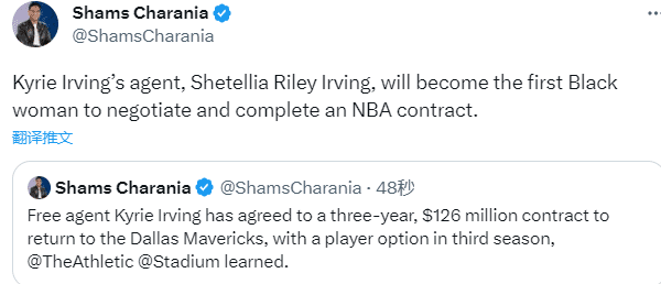 JRS直播网讯07月01日,NBA自由球员交易市场正式开启,据名记shams报道,欧文和独行侠达成3年1.26亿美元的续约合同,第三年是球员选项。