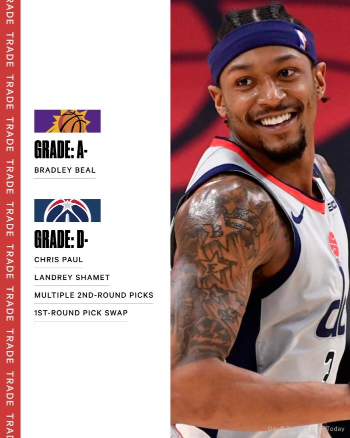 JRS直播网06月19日讯 NBA重磅大交易来了,太阳把保罗、沙梅特、几个次轮选秀权和多个选秀互换权交易到奇才,引援比尔打造超级阵容;太阳引援比尔引热议,杜兰特躺枪,名记直言奇才被抢劫了。