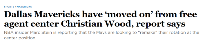 JRS直播网讯06月17日,据名记Marc Stein报道,独行侠预计不会给伍德提供续约报价,新赛季他不会回归达拉斯,独行侠已经决定与伍德分道扬镳,他们寻求重组他们在中锋位置上的轮换阵容;76人有意伍德,后者有望和哈登重聚。