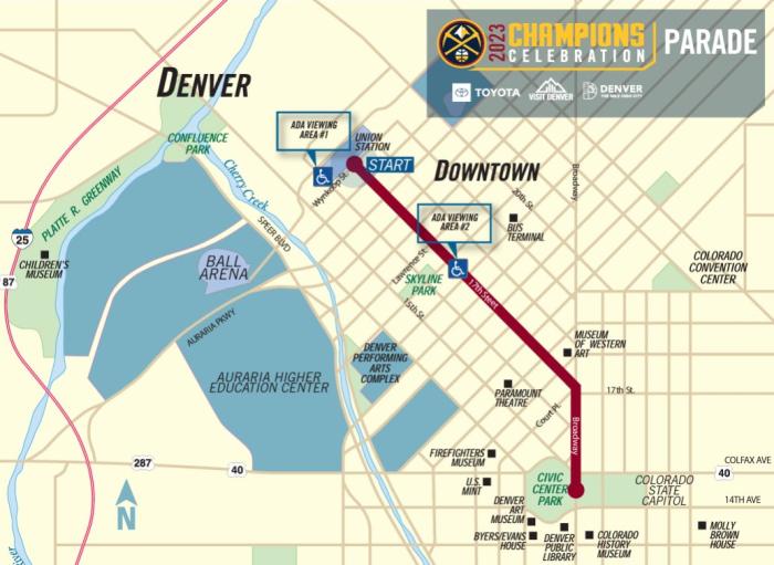 掘金将在北京时间6月16日凌晨0点举行游行典礼,在市民中心公园开始集合,从联合车站开始游行,最终抵达市政中心公园;届时掘金全队将乘坐大巴庆祝夺冠,与整座城市的球迷一起狂欢。