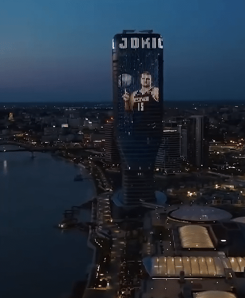 约基奇当选FMVP,他的祖国处于动荡中,而约基奇的夺冠也鼓舞了很多人。塞尔维亚最高楼贝尔格莱德塔被点亮了,贝尔格莱德塔一共42层,高168米,是塞尔维亚的最高塔,这里上演炫酷灯光秀,来庆祝约基奇夺得NBA总冠军。
