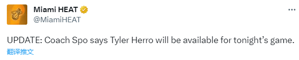 JRS直播网06月13日,NBA总决赛G5来了,热火官宣希罗复出,热火1-3落后陷入绝境仍旧不变阵,巴特勒、阿德巴约、乐福、斯特鲁斯和文森特继续首发,希罗复出替补;掘金沿用原有首发冲击队史首冠。
