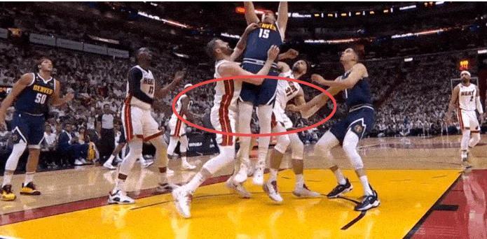 当约基奇起跳后,热火队的乐福身体是往前激的,而另一名热火队的球员斯特鲁斯的下半场则撞向了约基奇的腰,显然热火队这两名球员的动作并不像是单纯的对抗,作为球场上征战多年的球员,他们应该很明白这样的动作会挤压空间,会导致约基奇落地的时候没有足够的空间,而这随之带来的后果就是约基奇会遭遇崴脚,而事情最终的结果也是约基奇出现了崴脚的情况。