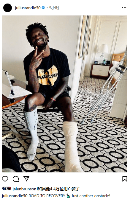 JRS直播网讯06月04日,尼克斯球星兰德尔已经成功接受脚踝手术,晒术后恢复照,配文写道:康复之路,只是又一个障碍;预计兰德尔将在下赛季训练营前康复。