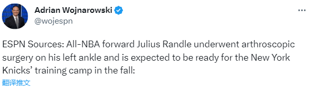 据woj报道,兰德尔接受了左脚踝关节镜手术,预计他可以为球队训练营做好准备。