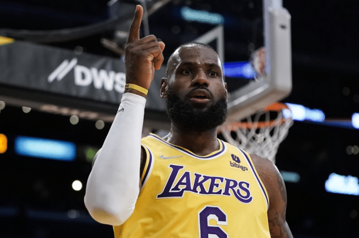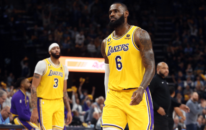 2022-23赛季,詹姆斯带领湖人艰难杀进季后赛,为湖人出战55场常规赛,场均拿到28.9分8.3篮板6.8助攻;季后赛出战16场比赛,场均上场38.7分钟拿到24.5分9.9篮板6.5助攻1.1抢断和1.1盖帽,带领湖人首轮4-2淘汰灰熊创造黑七奇迹并且西部半决赛4-2淘汰勇士,可湖人西决0-4被掘金横扫而惨淡出局。