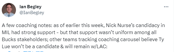 JRS直播网05月27日NBA选帅最新进展来了,纳斯有望执教雄鹿和字母哥,太阳助教有望担任球队新帅,泰伦-卢留守快船继续执教小卡和乔治。