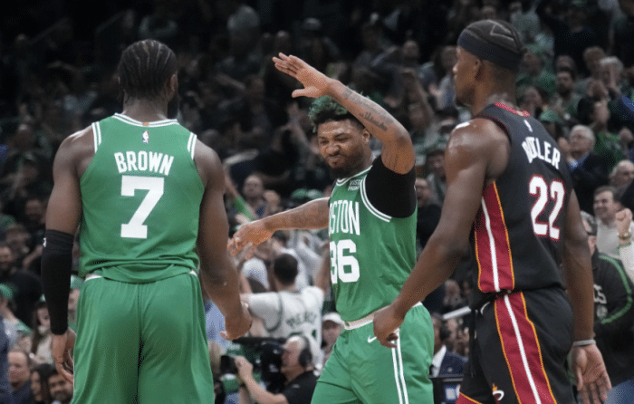 JRS直播网05月26日,NBA东决G5凯尔特人主场打爆热火,拒绝1-4再次扳回一城,把系列赛大比分改写成2-3;塔图姆全场21分11助攻8篮板,布朗21分2篮板2助攻,斯玛特23分5抢断3篮板2助攻,怀特24分3篮板,他们四人三分球25中14,合砍89分带队延续系列赛。