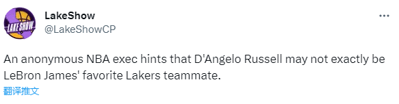 另外NBA匿名高管表示拉塞尔可能不是詹姆斯喜欢的队友。这位高管表示:我不想说一个季后赛系列赛可以改变一个球队对一个人的整体看法,因为这根本不会发生,但这是发生在大楼里的一些人身上的,也许最重要的是勒布朗。这是他们想要投资的人吗?勒布朗想要他回来吗?有传言说他不是拉塞尔的最大粉丝。