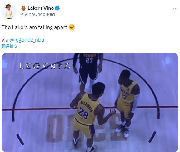 JRS直播网讯05月20日,西决两场战罢,湖人连续2场惜败,总比分0-2落后陷入困境,西决G2湖人输球还发生不和谐一幕,施罗德责怪八村垒不换防,双方激烈争吵,湖人媒体发推表示:湖人正在分离崩析。