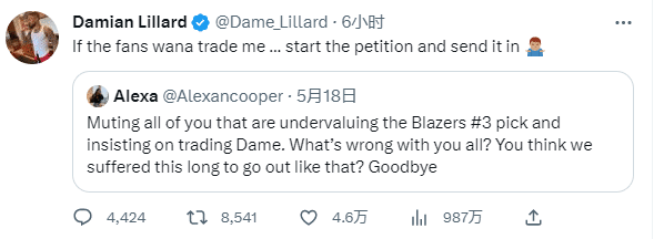 利拉德转发并回复:如果球迷们想要交易我,那就写请愿书并发出来吧!