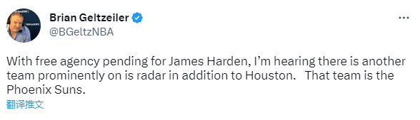 据美国媒体人、节目主持人Brian Geltzeiler报道,除火箭外,太阳也是哈登潜在的自由球员目的地。