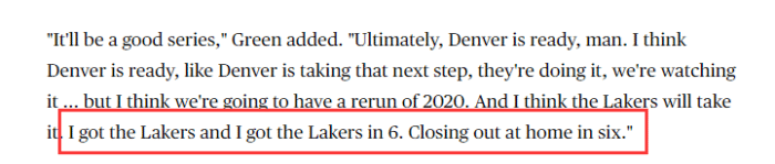 格林预测:我认为我们会重回2020您,我认为湖人6场晋级,G6主场拿下系列赛。