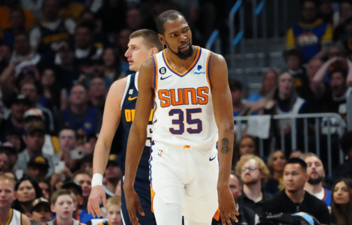 G5天王山关键一战,杜兰特和布克神奇不在,约基奇带队轻松夺得赛点;G6生死战,保罗和艾顿双双伤停,太阳第一节就被打崩了,杜兰特休息时被掘金打出17-0攻势,之后掘金在防守端疯狂夹击以及消耗杜兰特,半场打完太阳落后30分,比赛早早沦为垃圾时间,最终太阳输掉生死战,次轮总比分2-4被掘金淘汰出局。
