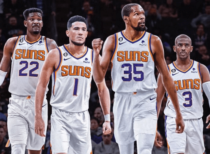 在交易截止日前,太阳和篮网达成一笔轰动联盟大交易,太阳引援杜兰特打造ABCD四巨头,剑指总冠军,最终常规赛45胜37负排在西部第四位。
