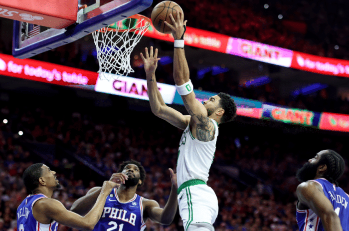 末节,绿军和76人打到十分僵持,塔图姆造犯规两罚全中,之后突破上篮不中,防守中拉拽马克西被吹转换犯规;关键时刻,塔图姆迎着恩比德轰进三分,单挑马克西命中撤步三分,之后塔图姆再中三分,36.6秒,塔图姆三分杀死比赛,最终绿军拿下生死战。