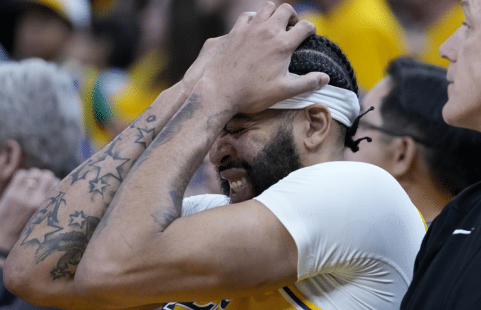 湖人和勇士G5末节6分多钟,浓眉在比赛中被卢尼肘击到太阳穴,之后浓眉捂着头部十分痛苦,无法参与防守,坐回替补席仍明显眩晕,缓了一段时间后,浓眉离场返回更衣室,坐着轮椅接受检查,因伤提前退出比赛;赛后名记透露初步诊断,浓眉似乎免遭脑震荡。