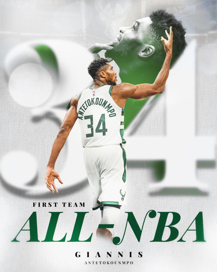 字母哥获得全部100张第一选票,总分500分成为联盟唯一一位全票入选2022-23赛季最佳阵容的球员,字母哥已经连续5年全票入选,生涯第7次入选最佳阵容;字母哥成为NBA过去50年第一位连续5年全票最佳一阵的球员。