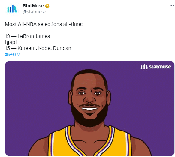 在以上15位入选最佳阵容的球员中,亚历山大、福克斯、小萨和米切尔都是生涯首次入选最佳阵容,38岁詹姆斯压哨入选,生涯第19次入选并且连续19年入选最佳阵容,两大神迹都创造新的NBA历史纪录,也是NBA历史上第一位在生涯第20个赛季仍入选最佳阵容的球员,湖人官方祝贺詹姆斯。