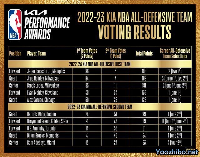 JRS直播网05月10日,NBA官方公布了2022-23赛季常规赛最佳防守阵容。