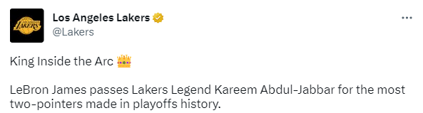 詹姆斯又迎来里程碑时刻,季后赛两分球命中数超越“天勾”贾巴尔,成为NBA历史上季后赛命中两分球最多的球员,又创季后赛历史第一纪录。