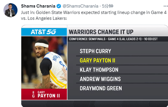 JRS直播网05月09日,据名记shams报道,勇士预计将在半决赛G4大变阵,小佩顿将顶替贾麦考-格林进入首发,搭档库里、汤普森、格林和维金斯首发出战,换言之,科尔将会祭出死亡五小。