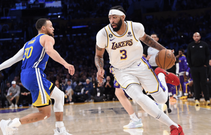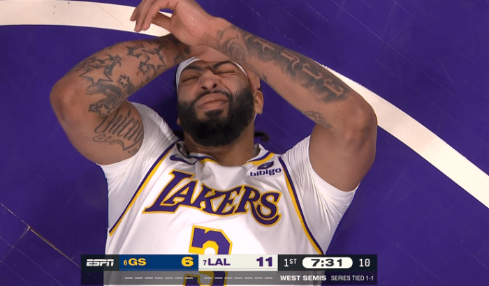 JRS直播网讯05月07日,NBA季后赛湖人主场大胜勇士30分,系列赛总比分2-1领先,浓眉全场10投7中轰下25分13篮板3助攻3抢断4盖帽,多次重摔倒地撞伤肋骨,末节坐在替补席仍捂着肋骨;湖人第二节30-8奠定胜局,之后牢牢掌控局面,詹眉提前9分钟打卡下班,坐替补席有说有笑,开怀畅聊。