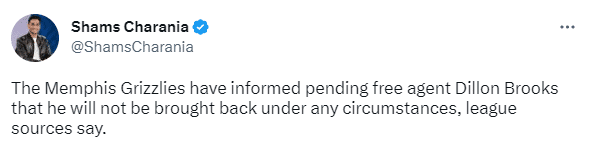 JRS直播网05月03日讯 ,据名记shams报道,灰熊已经明确表态,他们不会和狄龙续约,双方已经达成一致,后者确定将离开灰熊,全美热议狄龙加盟上海大鲨鱼队。