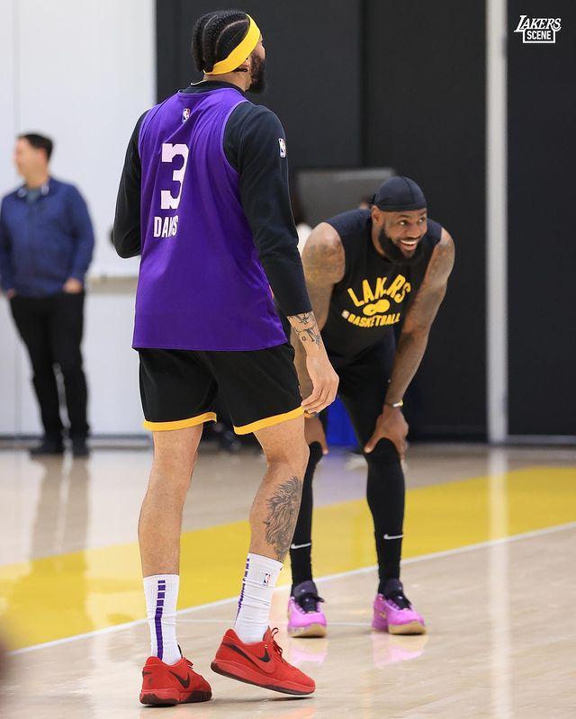 詹姆斯还和八村垒等人进行左手罚球PK,詹姆斯等人满脸笑容,湖人队内的训练氛围特别好;今年季后赛,湖人首轮4-2淘汰西部第二的灰熊,詹眉带队成功黑七创造历史,他们将在半决赛大战卫冕冠军勇士。