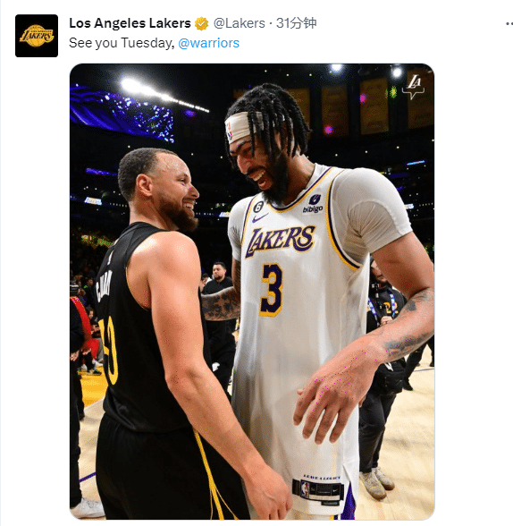 勇士晋级后,湖人官方晒照迎战卫冕冠军,并且晒出两队的具体赛程: