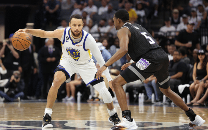 抢七生死战,库日天强势统治比赛,第一节和第二节都拿到10分,第三节独砍14分,末节则是爆砍16分打崩国王,比赛早早沦为垃圾时间,库里用一场50分的疯狂表现,带领卫冕冠军拿下首轮;库里一战狂刷多项历史纪录,单场50分超越杜兰特成为历史抢七得分王,抢七三分命中数超越雷阿伦历史第一,季后赛生涯首次轰下50+创纪录。