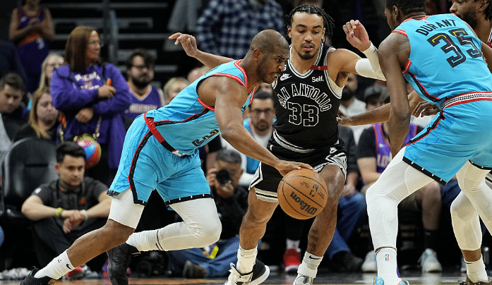 JRS直播网04月05日讯 太阳豪取6连胜,在击败马刺之后,太阳锁定季后赛名额,最近6场比赛全胜,表现极其出色,布克、杜兰特、艾顿和保罗的磨合越来越好,虽然排名西部第四,但有很多球迷看好这支针对性补强的球队,认为他们冲击总冠军的希望很大。目前太阳的战绩为44胜35负,追赶第三无望,同时领先身后勇士、快船等队有优势,所以太阳的常规赛排名,极有可能就是第四,季后赛首轮拥有主场优势。