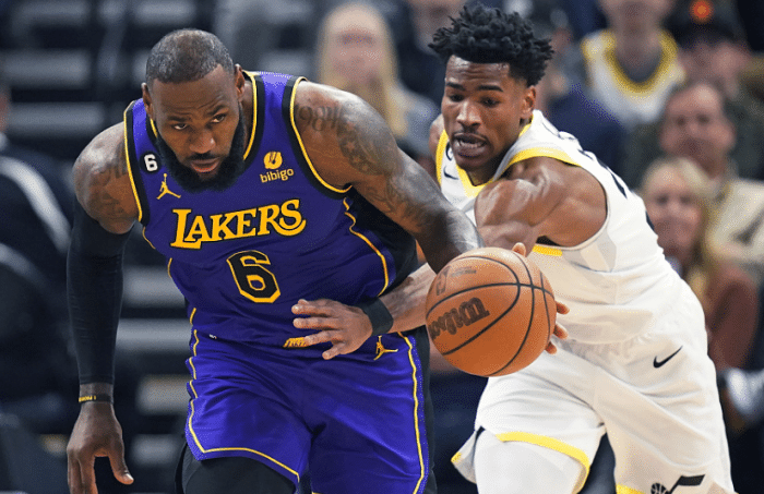 湖人加时险胜爵士,38岁詹姆斯全场27投14中狂砍37分5篮板6助攻1盖帽1抢断,虽然末节错失绝杀被拖进加时,但加时赛老詹独砍9分接管比赛,生死时刻制胜一击准绝杀。赛后詹姆斯坐在更衣室接受采访时,众队友集体学山羊叫,叫声十分响亮,响彻更衣室。