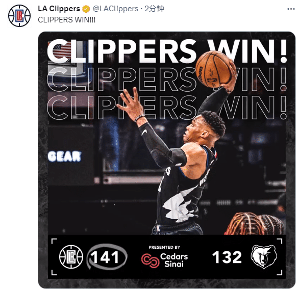 JRS直播网03月30日,快船客场击败并且终结西部第二灰熊的7连胜,41胜36负守住西部第5的位置,乔治因伤休战,小卡因个人原因休战,威少单核带队拿下比赛,全场18投13中、三分5中5、罚球9中5轰下36分10助攻4篮板2盖帽,首节独砍15分以及握拳怒吼庆祝,末节贡献9分掌控比赛,一战连刷多项纪录。