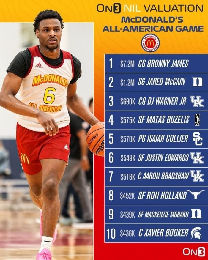 据悉,目前在身价方面,布朗尼720万美元排名全美高中运动员第一,在这次全明星的参赛者中,离他最近的一位也只不过是120万美元。